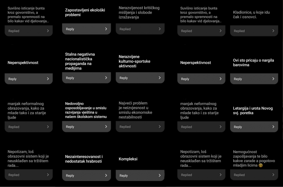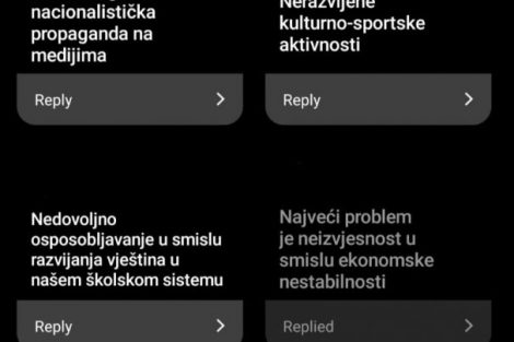 Kroz Instagram Story i anketu koju smo postavili na profilu Radija Active, saznali smo koji su to problemi koji najviše zabrinjavaju mlade u Bosni i Hercegovini. Naši pratitelji su bili vrlo kratki zbog ograničene dužine odgovora, ali se svakako većina može složiti sa onim što su nam poslali.
