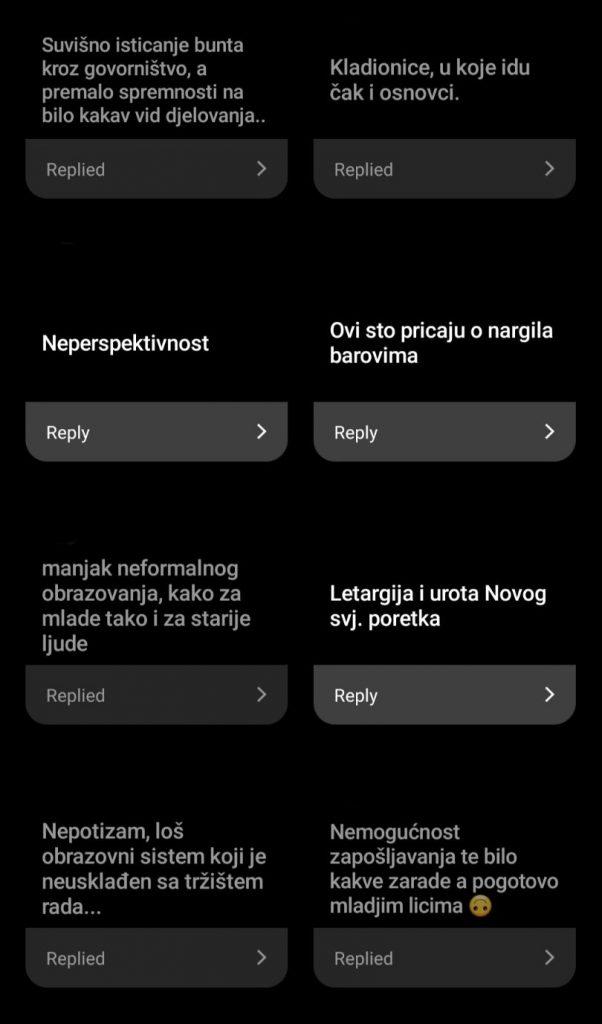 Kroz Instagram Story i anketu koju smo postavili na profilu Radija Active, saznali smo koji su to problemi koji najviše zabrinjavaju mlade u Bosni i Hercegovini. Naši pratitelji su bili vrlo kratki zbog ograničene dužine odgovora, ali se svakako većina može složiti sa onim što su nam poslali.