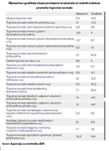 Rast od 1,4 posto zabilježen je u prodaji hrane, pića i duhana.