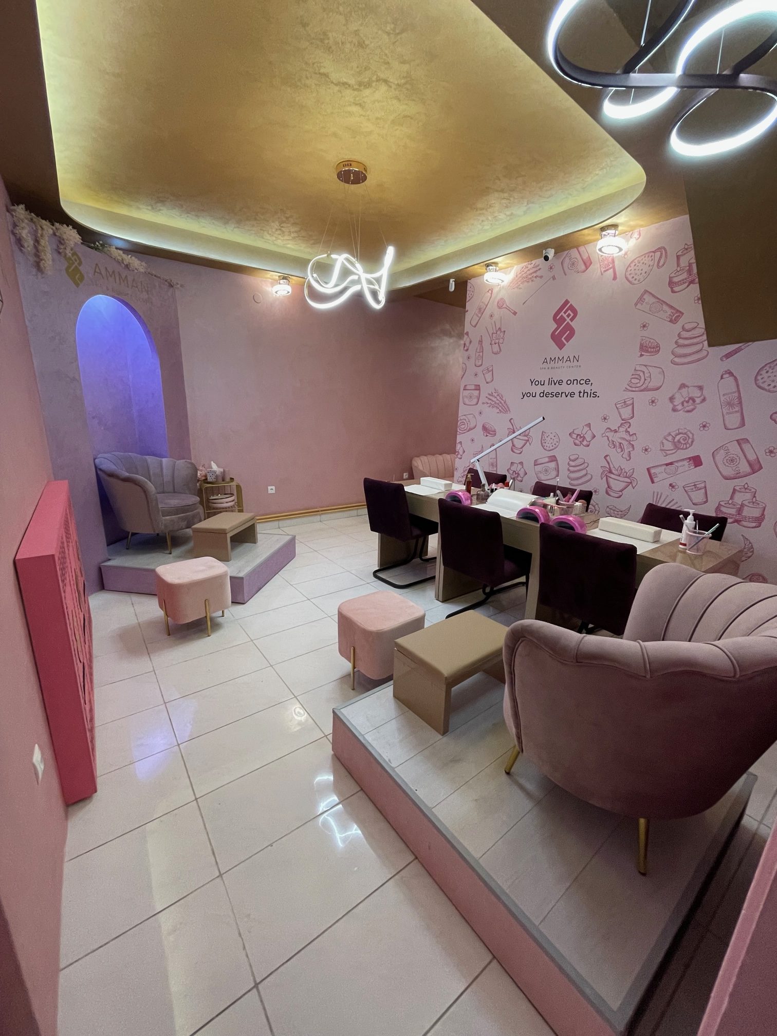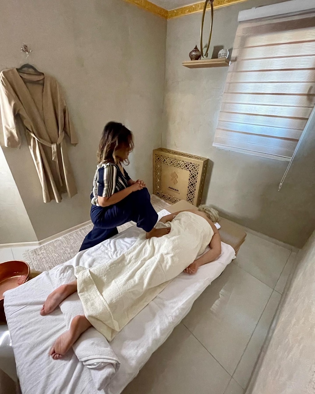 Ugodan i neobičan orijentalni ambijent u strogom centru Starog Grada, upotpunjuje pet soba za masažu, koje su opremljene posebno izrađenim drvenim krevetima, te specijalnim tajlandskim krevetima za thai masažu, kozmetički salon, sauna i soba za relaksaciju. Osim brojnih vrsta masaže, u Amman Spa & Beauty Centru postoje brojne spa usluge, peeling cijelog tijela, detox maske za lice i tijelo, sauna, bogate keratinske maske za kosu, te drugi kozmetički tretmani poput depilacija, manikira, pedikira, nadogradnje trepavica, hemijskog čišćenja lica itd.