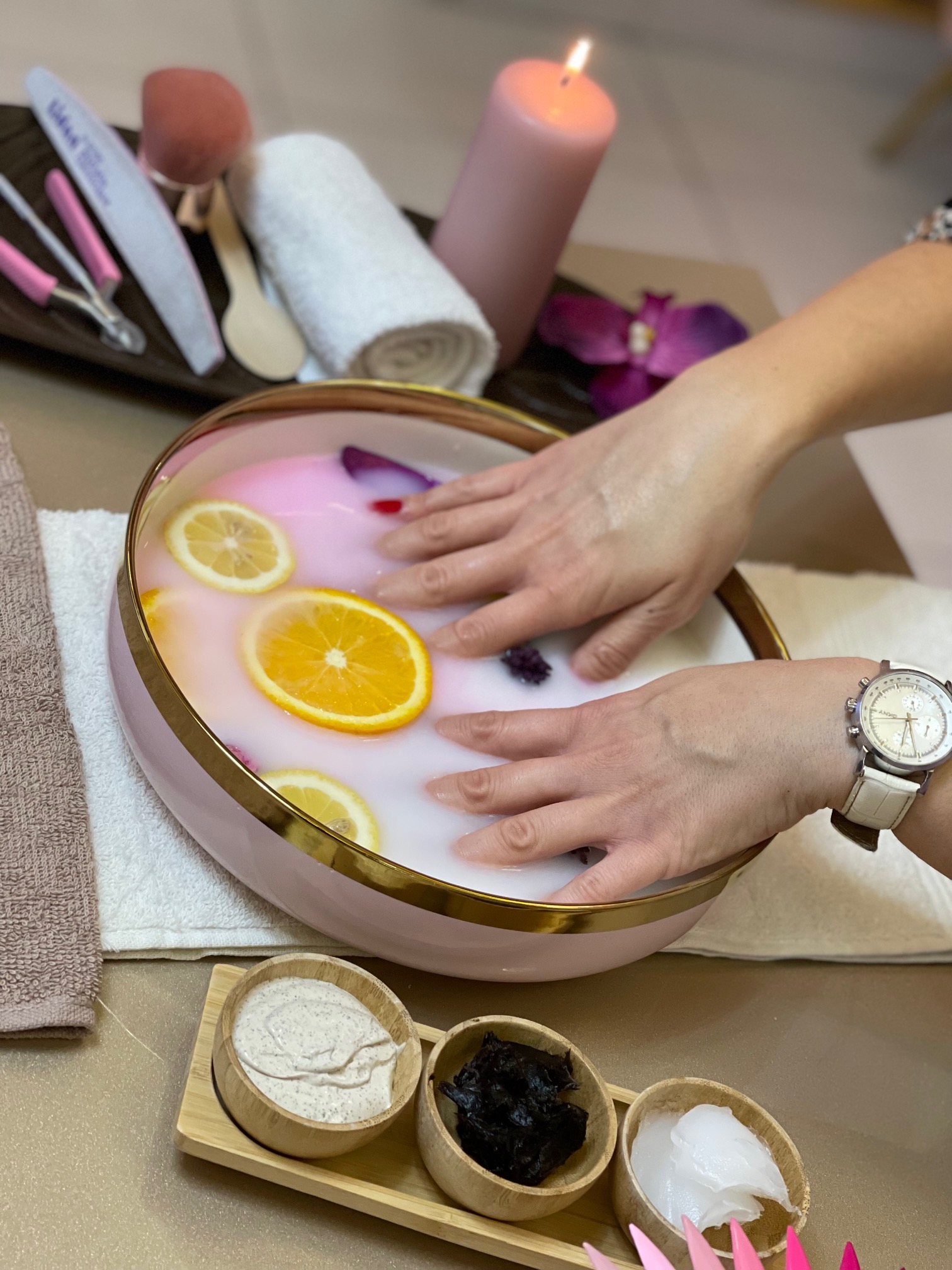 U ponudi su različite vrste manikira, nadogradnje noktiju, geliranja, trajnog laka i spa manikure, te tretmani za njegu nogu poput spa pedikira, ruskog ili suhog pedikira i trajnog laka za nokte.