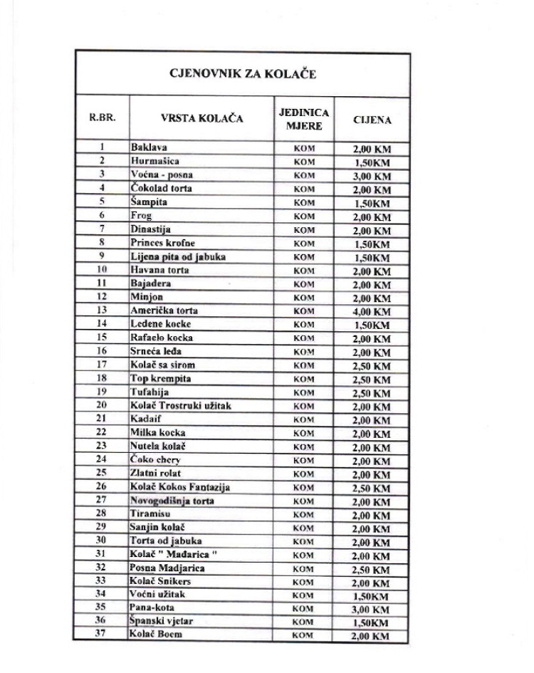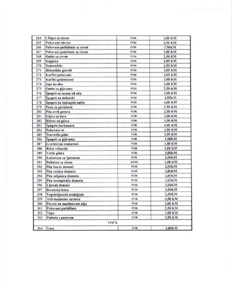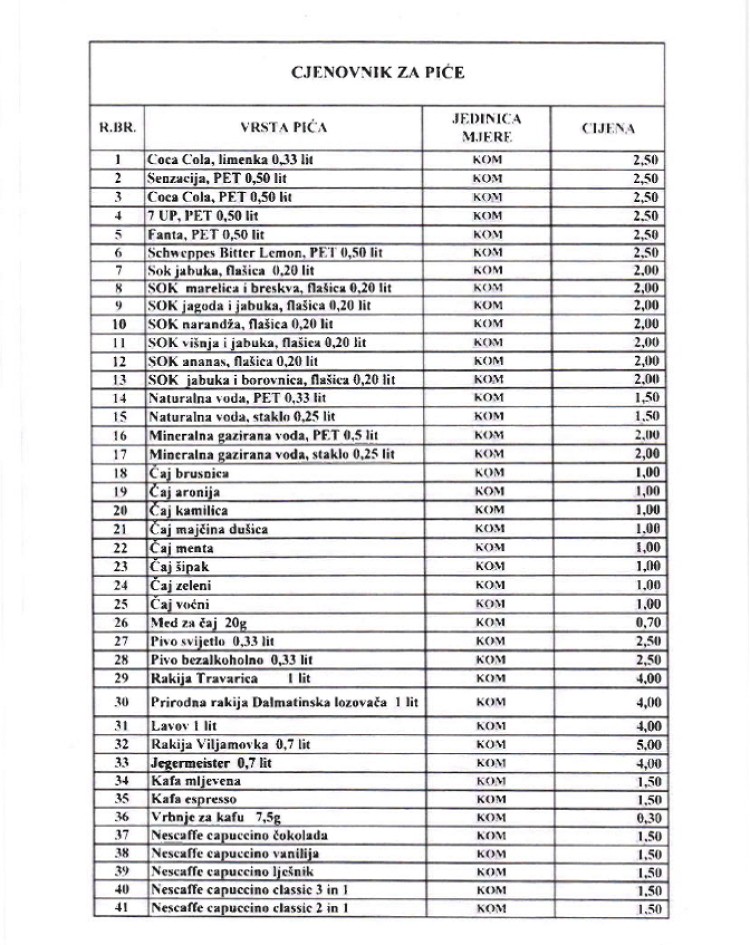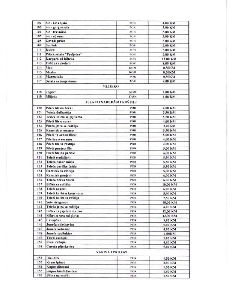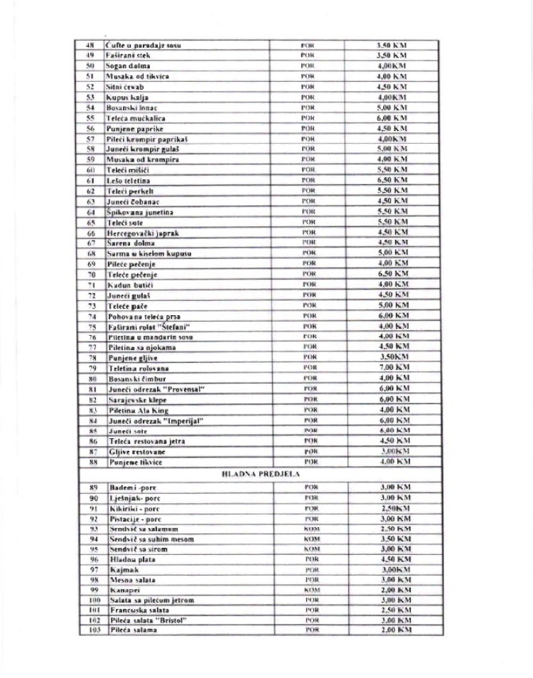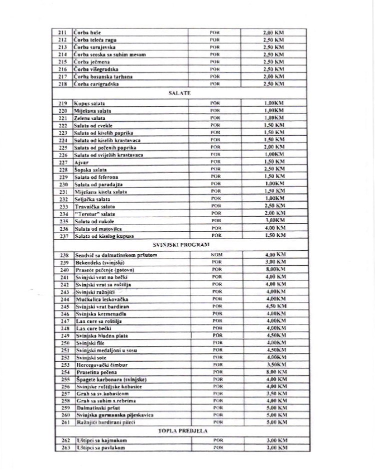 U nastavku donosimo kompletan meni i cjenovnik.