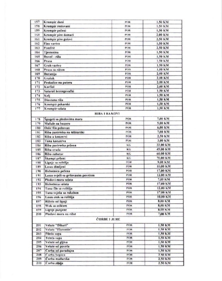 “Skočile” su i cijene priloga, pa će tako pekarski krompir plaćati 1,5 KM umjesto marku.