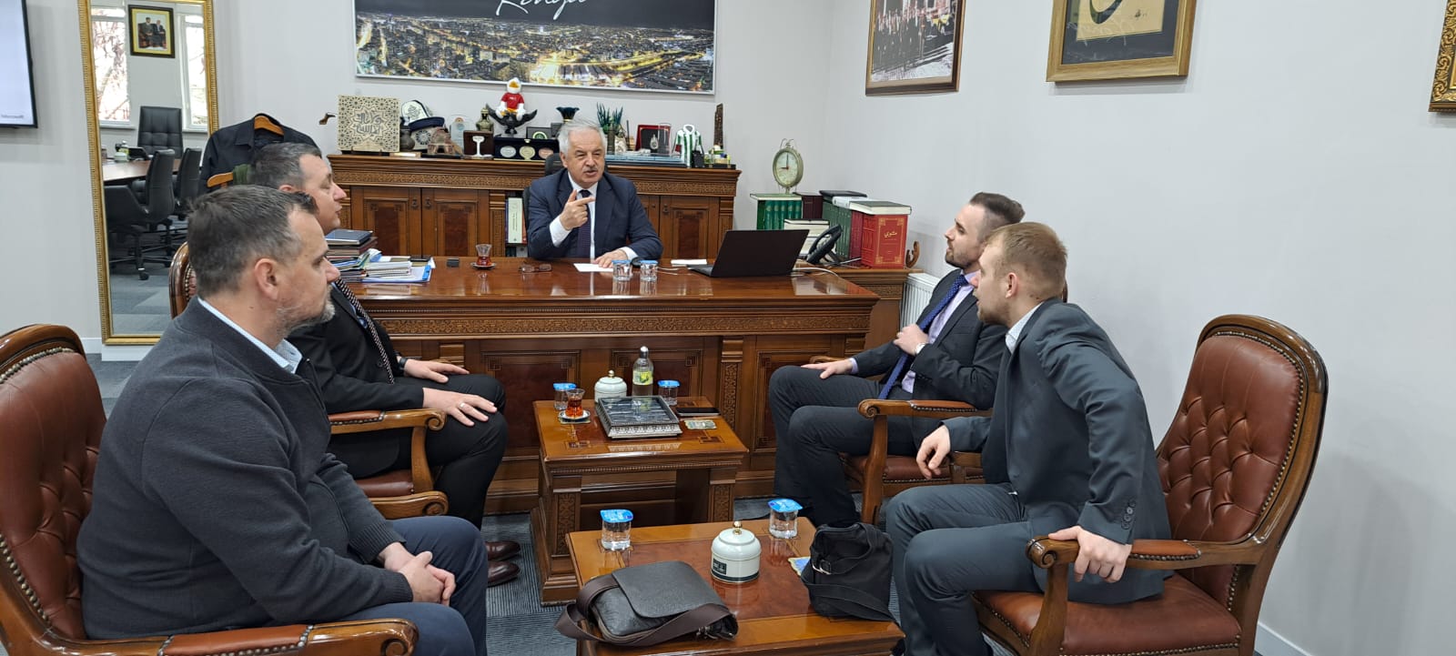 Delegacija ministarstva poljoprivrede, vodoprivrede i šumarstva ZDK na čelu sa proaktivnim ministrom Jasminom Cajićem poslije posjete sajmu poljoprivrede u Konyi posjetili su i sjedište Gradske Uprave Grada Konya, i susreli su se sa generalnim sekretarom Ercanom Uslu koji nas je toplo dočekao, i sa kojim smo razgovarali o saradnji i budućim zajedničkim aktivnostima. Predsjednik Asocijacije Mostovi Prijateljstva BiH Jasmin Imamović bio je takođe dio delegacije koja je tokom nekoliko dana boravka u Konyi realizovala veliki broj susreta i sastanaka.