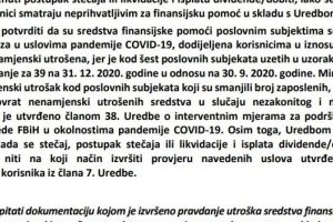 “Navedeno nije u skladu s članom 38. Uredbe o interventnim mjerama za podršku ugroženim sektorima privrede FBiH u okolnostima pandemije COVID-19”, upozorili su revizori.