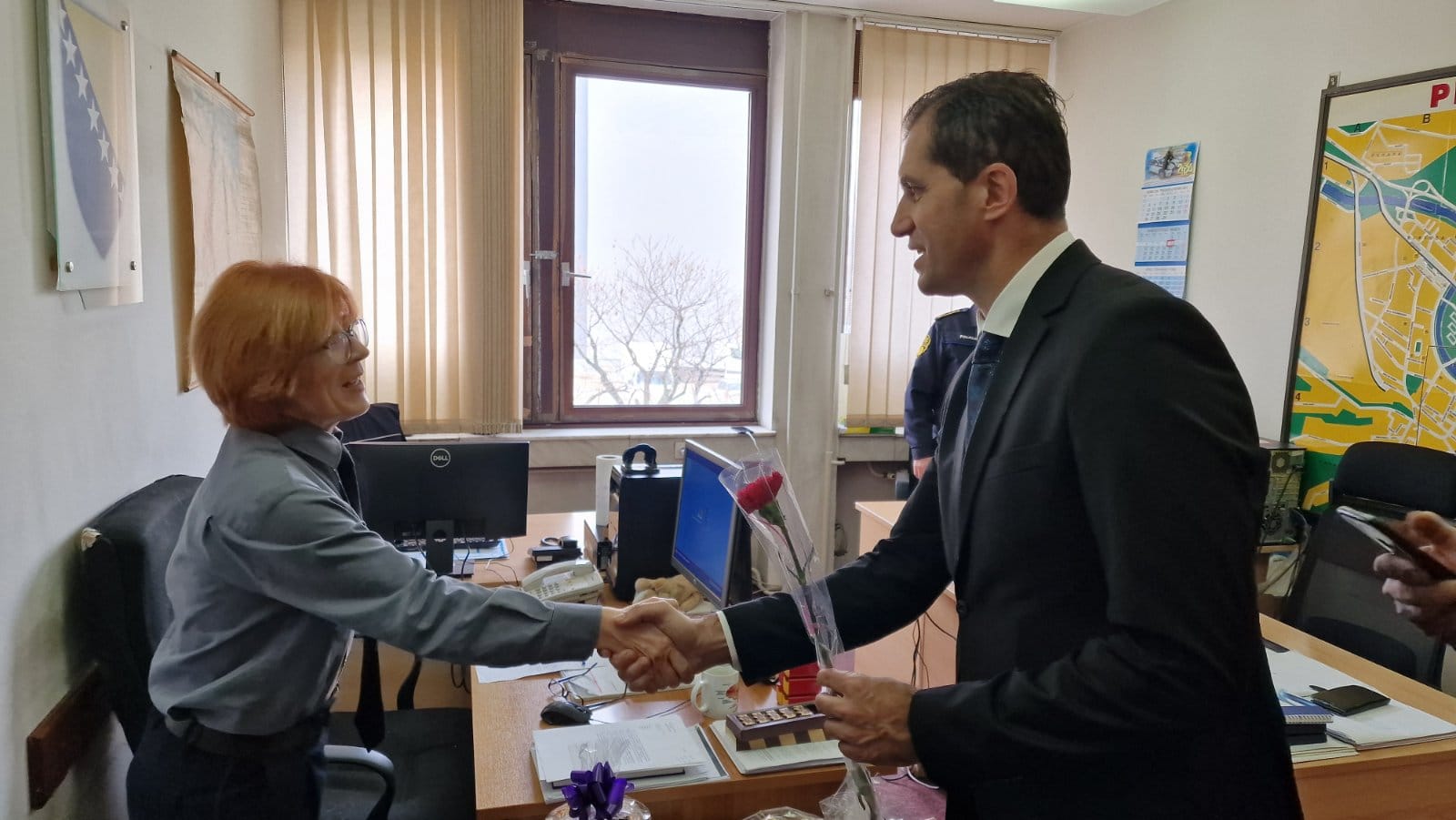 Ministar unutrašnjih poslova Zeničko-dobojskog kantona Emir Vračo je sa policijskim komesarom Admirom Gazićem danas obišao sve uposlenice Uprave policije i Ministarstva unutrašnjih poslova i iste darivao. Također, komesar i ministar su obišli i šalter salu gdje su poklonili karanfil svim damama koje su tamo zatekli.