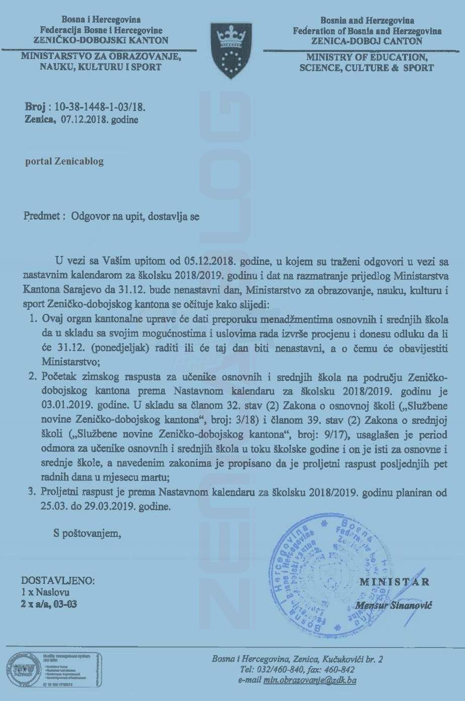 Zenicablog je tragom ove informacije zatražio službeni odgovor od Ministarstva obrazovanja Zeničko-dobojskog kantona, te vam u nastavku prenosimo informacije koje je naš portal dobio u službenom odgovoru ministra Mensura Sinanovića.
