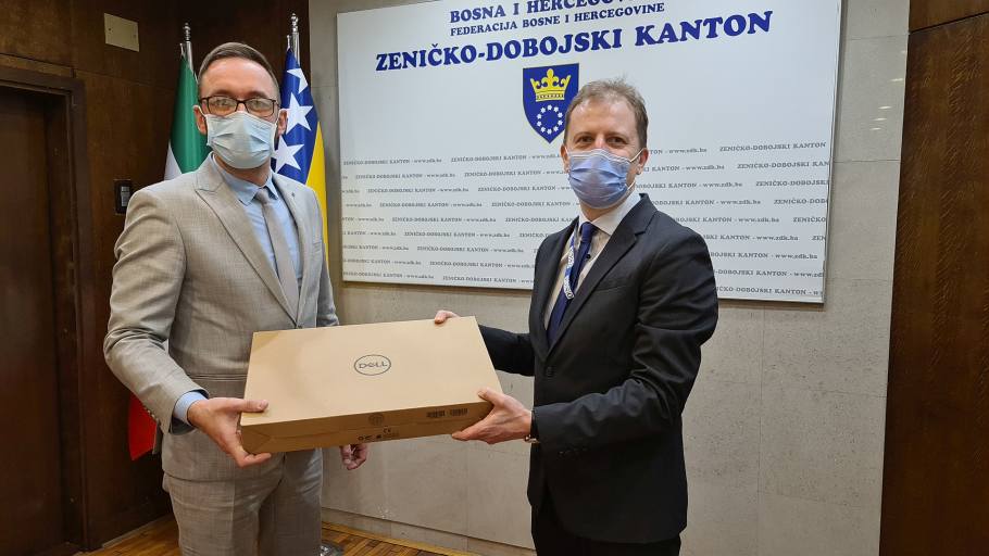 Misija OSCE-a u BiH donirala tehničku opremu Timu za prevenciju i borbu protiv korupcije ZDK- U ime Misije OSCE-a u Bosni i Hercegovni, službenik za demokratski razvoj Misije Daut Bajramović uručio je Timu Vlade Zeničko-dobojskog kantona za prevenciju i borbu protiv korupcije donaciju u tehničkoj opremi – laptop, projektor, dva eksterna hard diska i licencu za Zoom platformu.