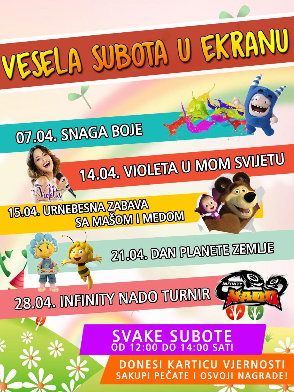 VESELA SUBOTA U EKRANU tokom mjeseca aprila donosi nove aktivacije, druženja i avanturu za naše najmlađe posjetioce: