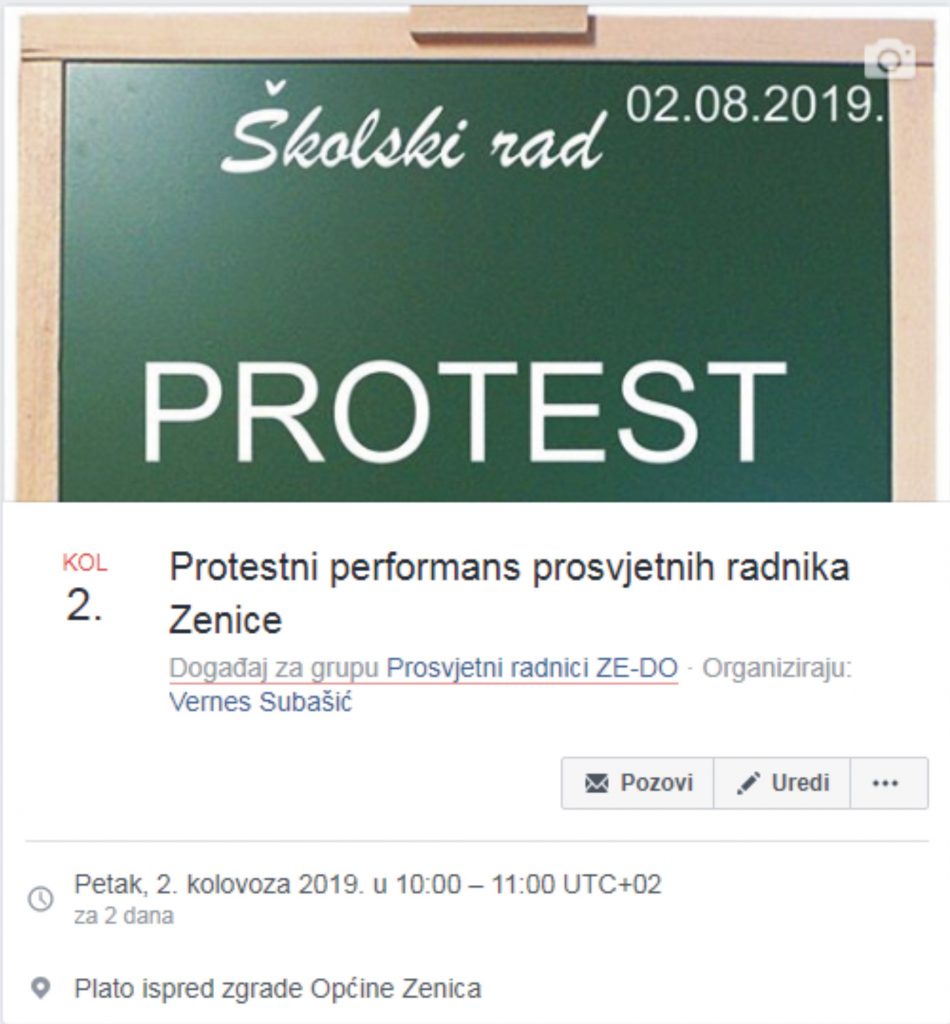 Poziv je objavljen od strane administratora FB grupe PROSVJETNI RADNICI ZE-DO KANTONA, a nalazi se na LINKU NAJAVLJENOG DOGAĐAJA