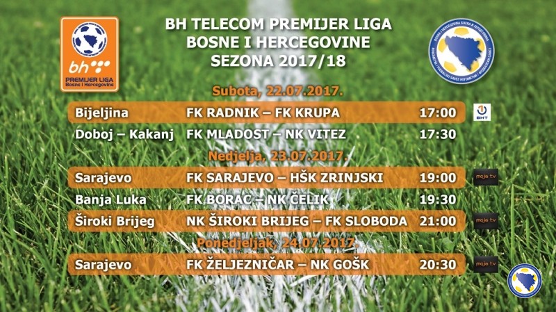 Donosimo kompletan raspored utakmica 1.kola (22./23. i 24.jula 2017.god.), parovi – satnica: