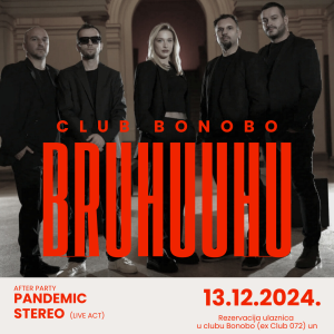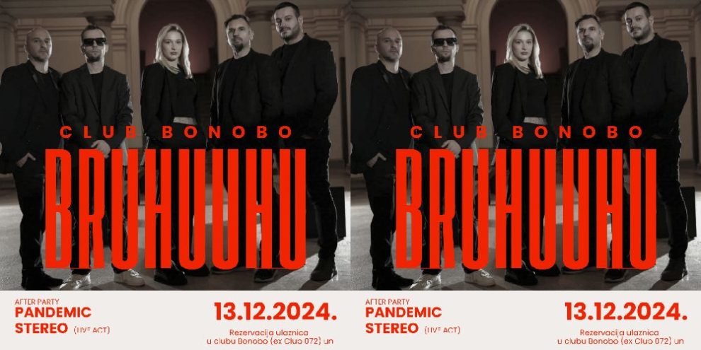 NAJAVA: Bruhuuhu i Pandemic stereo 13/12 u clubu Bonobo. Grupa Bruhuuhu će u petak 13/12 održati koncert u clubu Bonobo (ex Club 072).