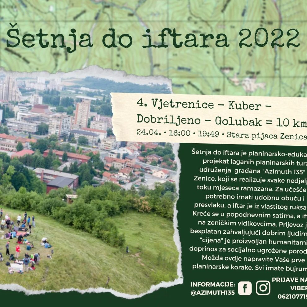 Četvrta #ŠetnjaDoIftara vodi nas u masiv planine Kuber, planine na jugozapadnoj strani gradskog područja Zenice. Padine obiluju bjelogoričnom i crnogoričnom šumom, a tura će nam pokazati pristup sa sjeverozapada.