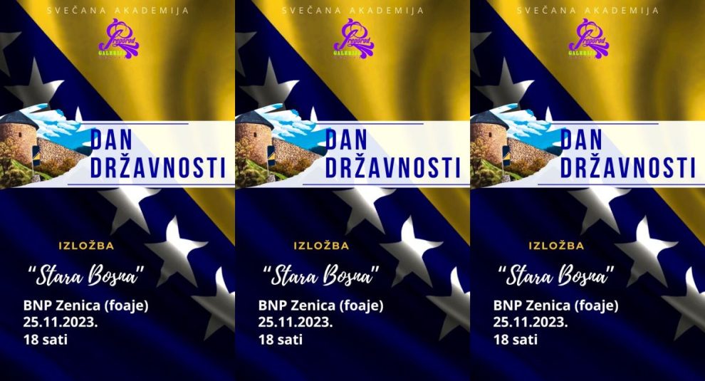 NAJAVA: Izložba slika “Stara Bosna” povodom Dana državnosti- Galerija „Preporod“ Zenica, povodom obilježavanja Dana državnosti, postavlja izložbu slika „Stara Bosna“, u okviru Svečane akademije koju priprema Zeničko-dobojski kanton.