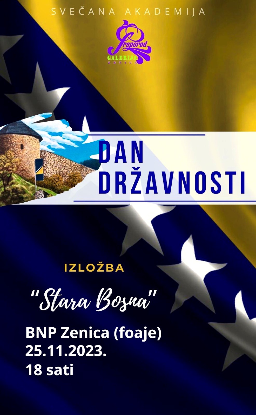 NAJAVA: Izložba slika “Stara Bosna” povodom Dana državnosti- Galerija „Preporod“ Zenica, povodom obilježavanja Dana državnosti, postavlja izložbu slika „Stara Bosna“, u okviru Svečane akademije koju priprema Zeničko-dobojski kanton.
