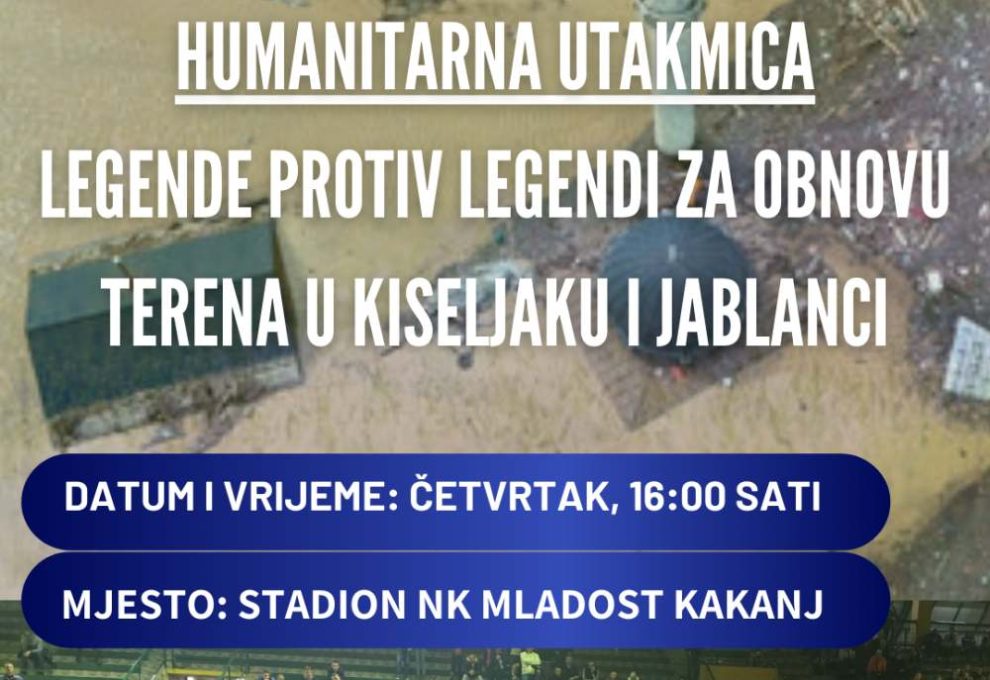 Sav prihod od prodaje ulaznica bit će usmjeren na obnovu terena u Kiseljaku i Jablanici.