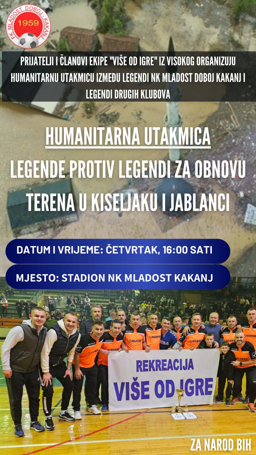 Prijatelji i članovi ekipe “VIŠE OD IGRE” iz Visokog organiziraju humanitarnu utakmicu između legendi NK Mladost Doboj Kakanj i Legendi drugih klubova iz BiH.