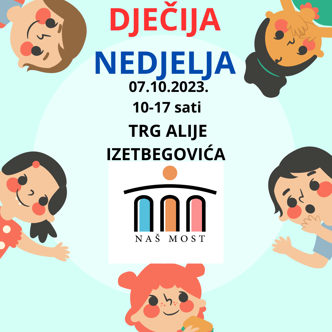 Udruženje građana „Naš most“ Zenica sa zadovoljstvom obaviještava javnost da će se 07.10.2023. godine, od 10 do 17 sati, na Trgu Alije Izetbegovića održavati manifestacija obilježavanja „Dječije nedjelje“.
