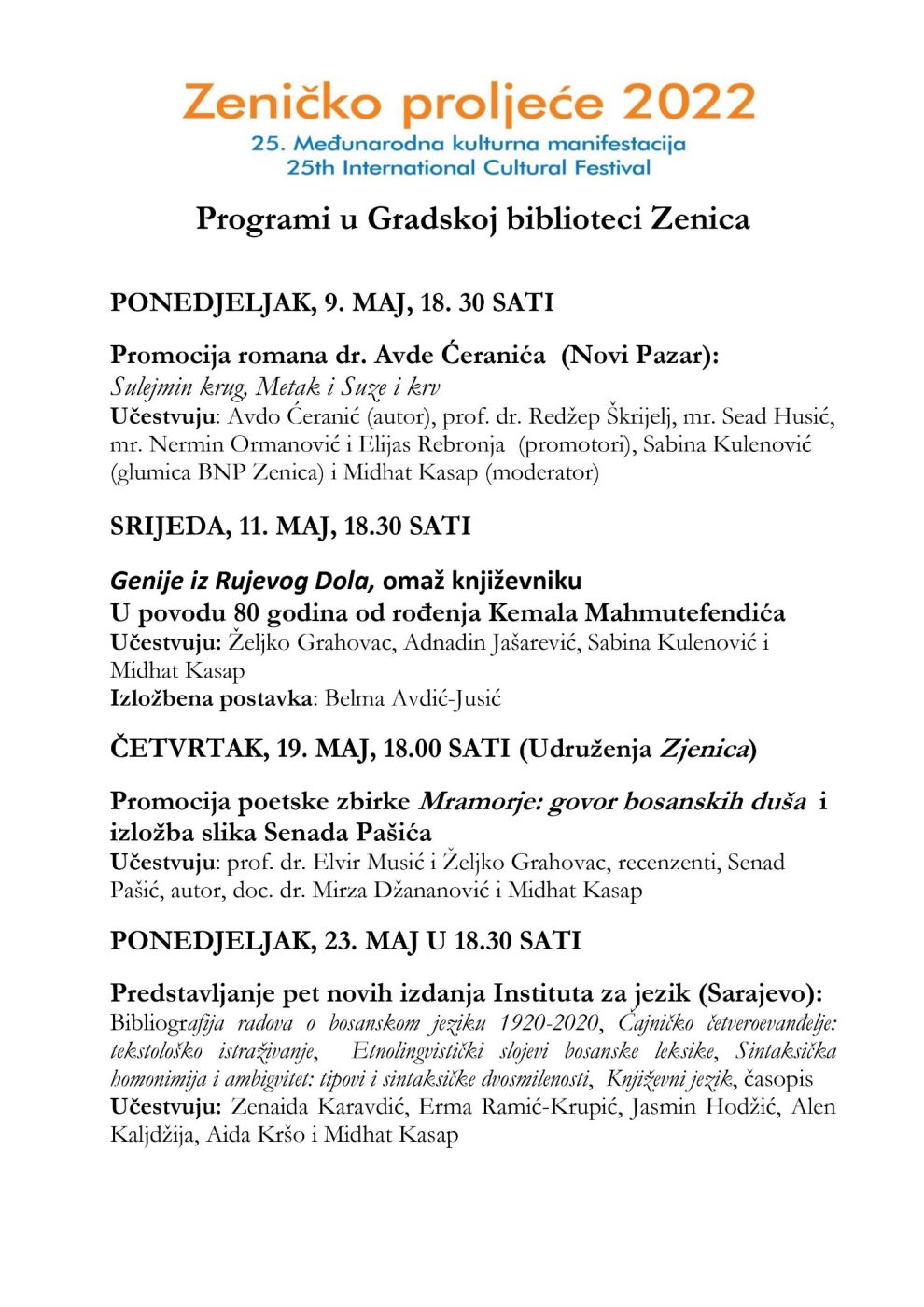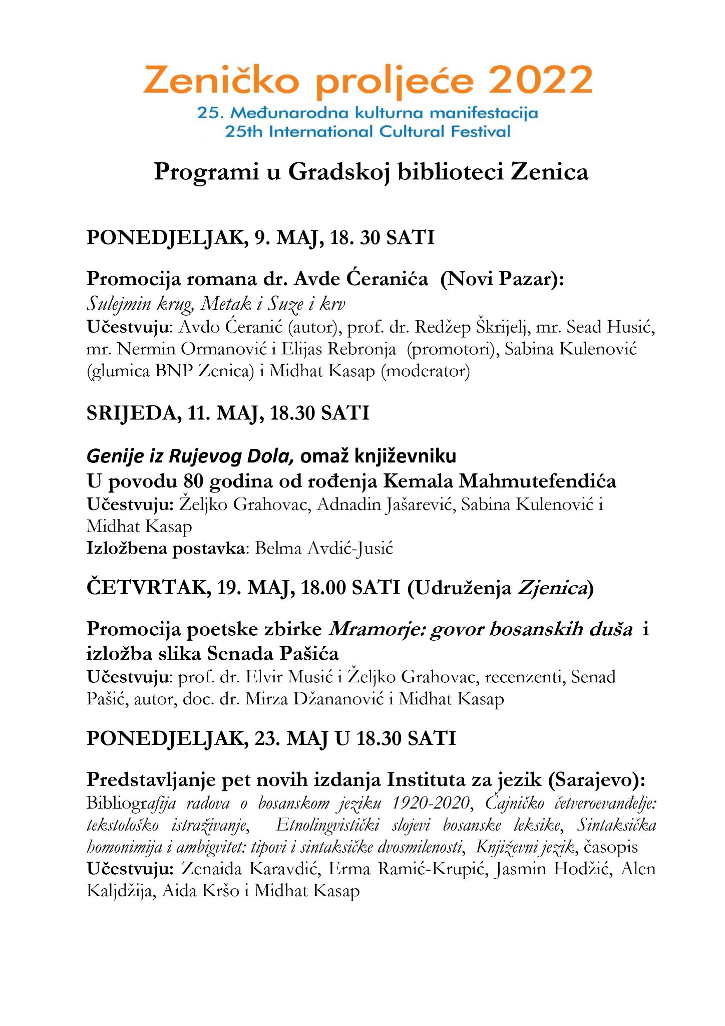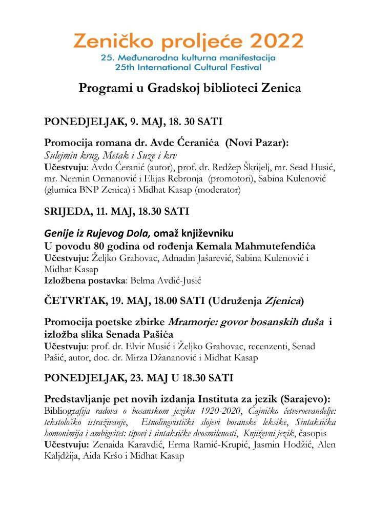 Posljednji program, predstavljanje novih izdanja Instituta za jezik iz Sarajeva planiran je za 23. maj (18.30 sati).
