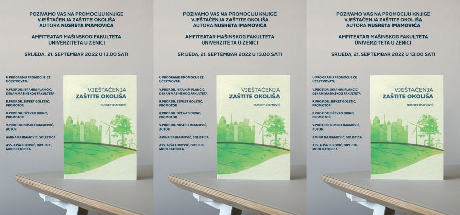 NAJAVA: Promocija knjige “Vještačenja zaštite okoliša” u srijedu 21. septembra- Pozivamo Vas na promociju knjige “ VJEŠTAČENJA ZAŠTITE OKOLIŠA“, autora prof. dr. sc. Nusreta Imamovića