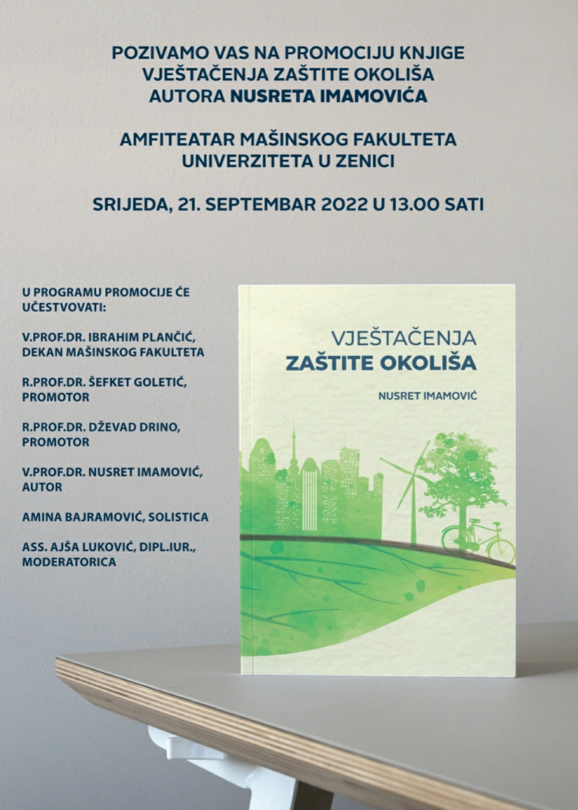 NAJAVA: Promocija knjige “Vještačenja zaštite okoliša” u srijedu 21. septembra- Pozivamo Vas na promociju knjige “ VJEŠTAČENJA ZAŠTITE OKOLIŠA“, autora prof. dr. sc. Nusreta Imamovića
