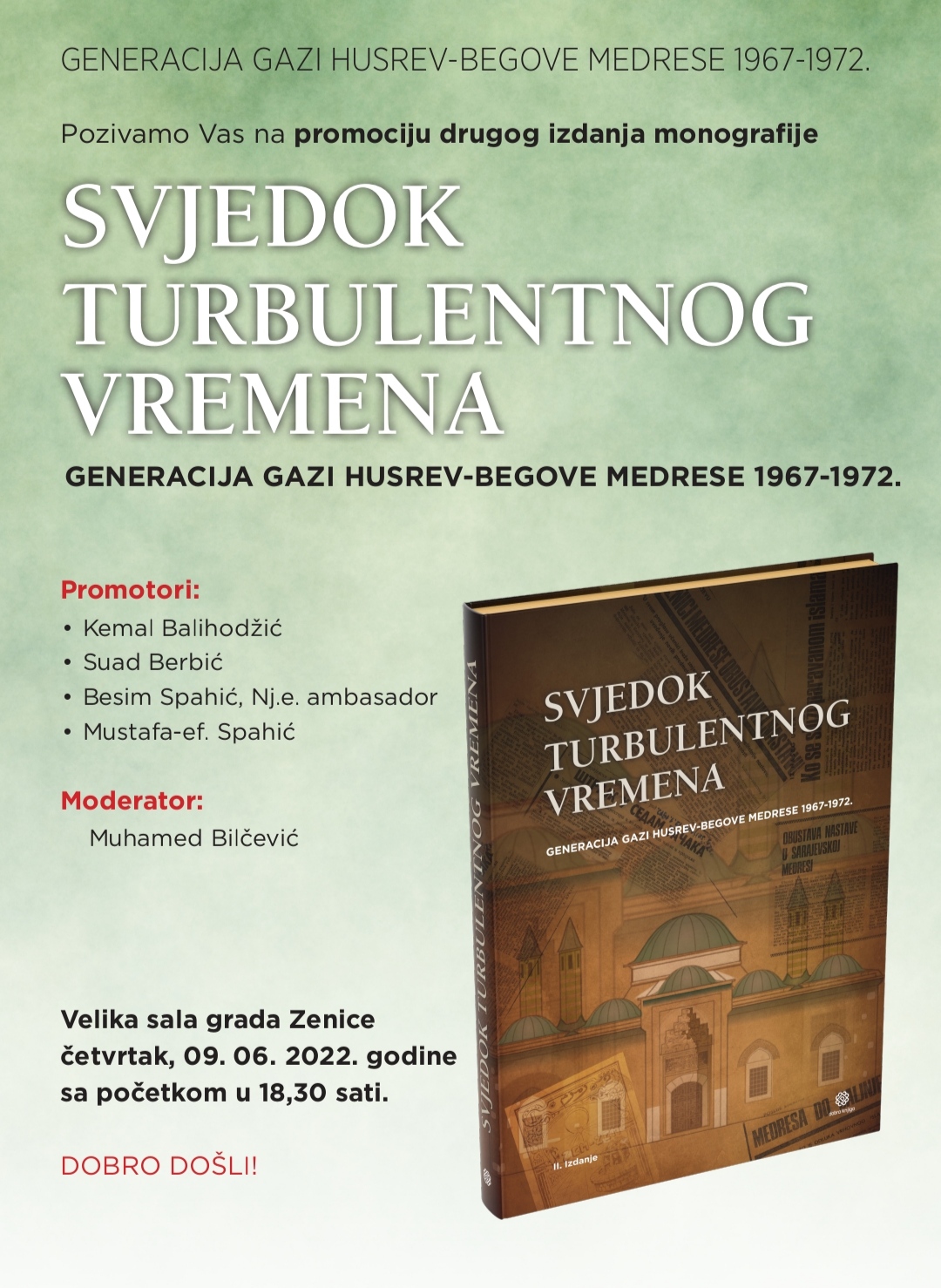 Nakon izlaska iz štampe drugog izdanja Monografije, Svjedok turbulentnog vremena, Generacija Gazi Husrev-begove medrese 1967-1972. nastavlja se promocija ovo Monografije.