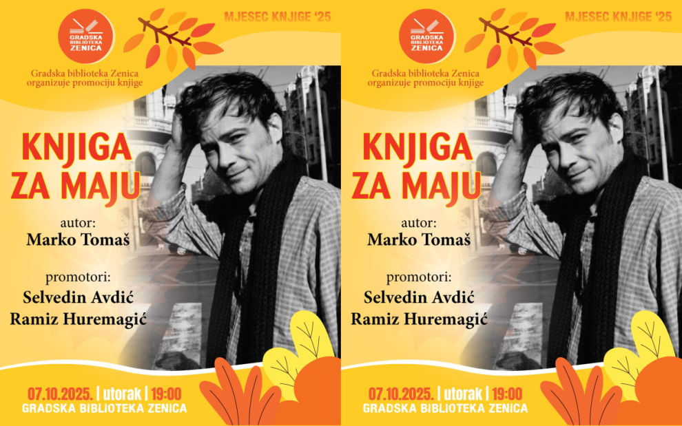 U Gradskoj biblioteci Zenica u utorak, 7. oktobra 2025. godine, bit će održana promocija nove knjige “Knjiga za Maju” poznatog bosanskohercegovačkog književnika Marka Tomaša iz Mostara.