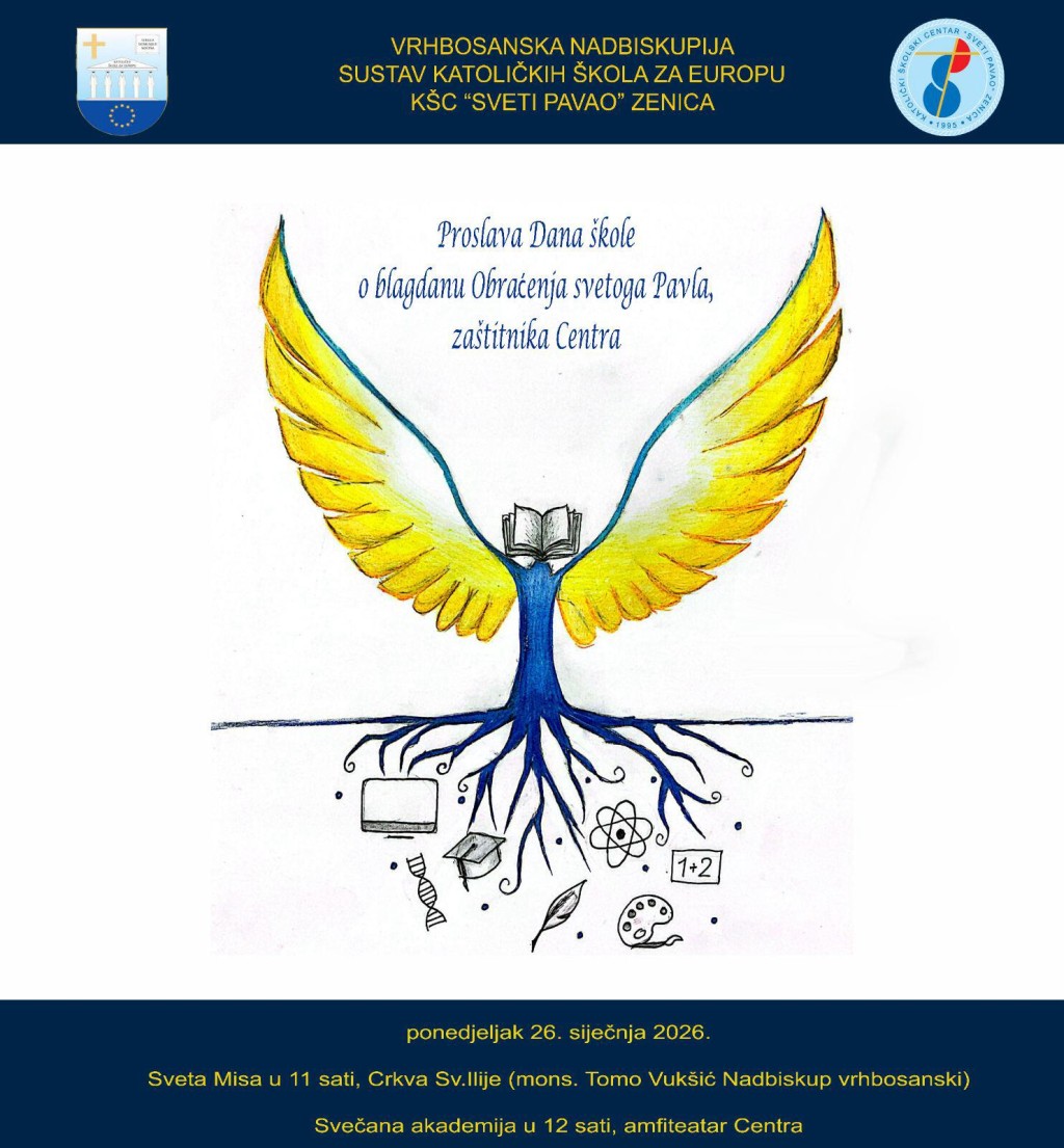 NAJAVA: Proslava Dana škole KŠC-a „Sv. Pavao“ u Zenici- Katolički školski centar „Sv. Pavao“ proslavit će Dan škole na blagdan obraćenja sv. Pavla, svog zaštitnika, u ponedjeljak, 26. januara 2026. godine.