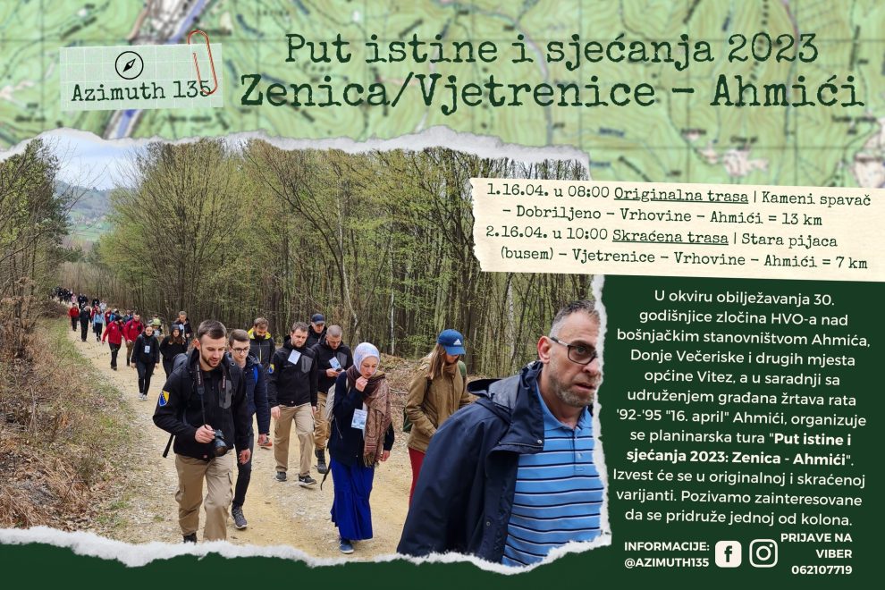 U okviru obilježavanja 30. godišnjice zločina HVO-a nad bošnjačkim stanovništvom Ahmića, Donje Večeriske i drugih mjesta općine Vitez, organizuje se planinarska tura “Put istine i sjećanja Zenica – Ahmići” u dvije varijante