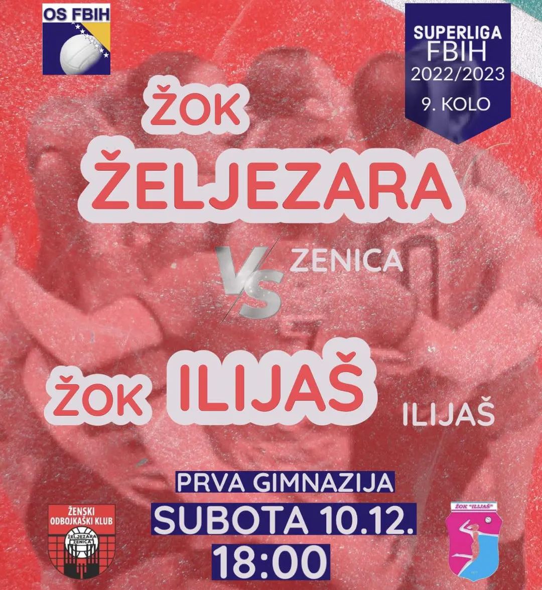 18 sati, Zenica: ŽOK „Željezara) – OK „Ilijaš“ (Superliga za žene, grupa Jug, 9.kolo);