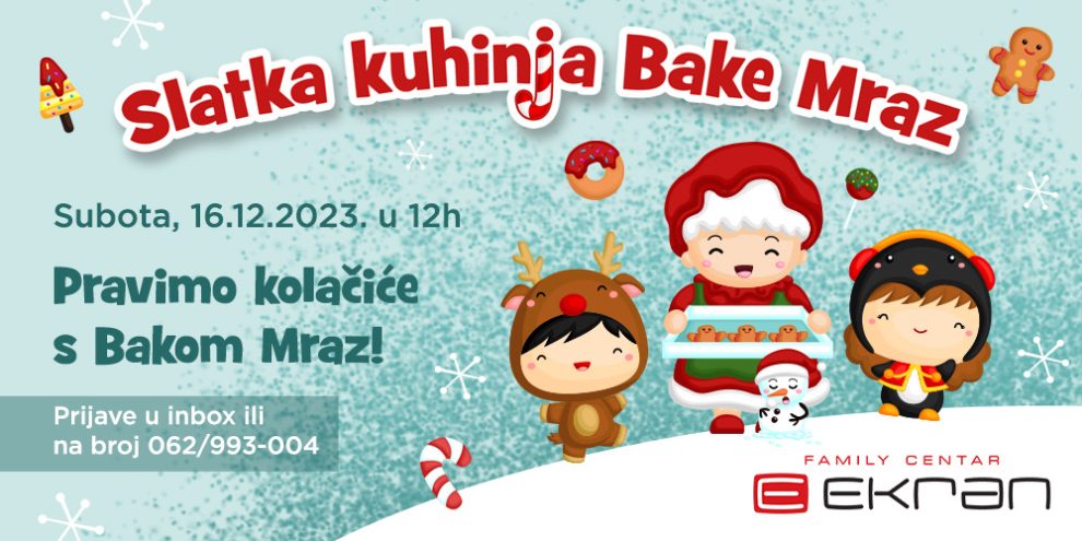 Dragi roditelji i mališani, pozivamo vas na naaaajsladje, zimsko druženje u Slatkoj Kuhinji Bake Mraz!