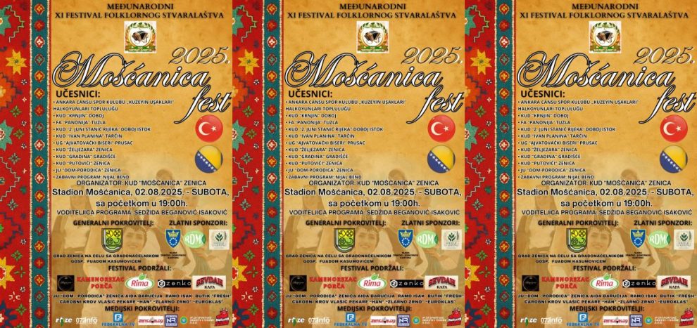 NAJAVA: XI međunarodni festival folklornog stvaralaštva „Mošćanica fest 2025.“- XI MEĐUNARODNI FESTIVAL FOLKLORNOG STVARALAŠTVA „MOŠĆANICA FEST 2025.“