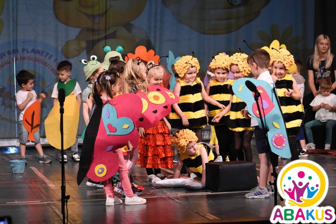 Vrtić “Abakus” je za 14 godina rada organizirao preko 50 kulturno-javnih manifestacija. Prošlogodišnji Festival za ekologiju i mir “Djeca su čuvari planete i svijeta” osvojio je najprestižnije priznanje za edukatore u Bosni i Hercegovini, “Nagradu za najinovativnije odgajateljice u 2022. godini”, COI Step by step, što nas čini direktnim aplikantima i za prestižnu svjetsku nagradu Global Teacher Prize. Naša originalna autorska ekološka predstava “Kad se male ruke slože”, kao dio sadržaja Festivala, nagrađena je sa tri nagrade na Smotri dramskog stvaralaštva vrtića i škola ZDK: Nagradom za kolektivnu igru, Nagradom za partnersku igru, te glavnom Nagradom za najbolju predstavu takmičenja u cjelini.