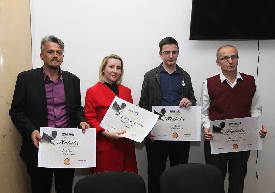 Druga nagrada je pripala Edinu Ibreljiću za priču „Palestinska kuća“ dok je treću osvojio Senad Duran za priču „Dnevnik nedosanjane ulice“.Specijalna nagrada „Naše riječi“ dodjeljena je mladoj Emini Selimović za njenu priču „Vratnice“.