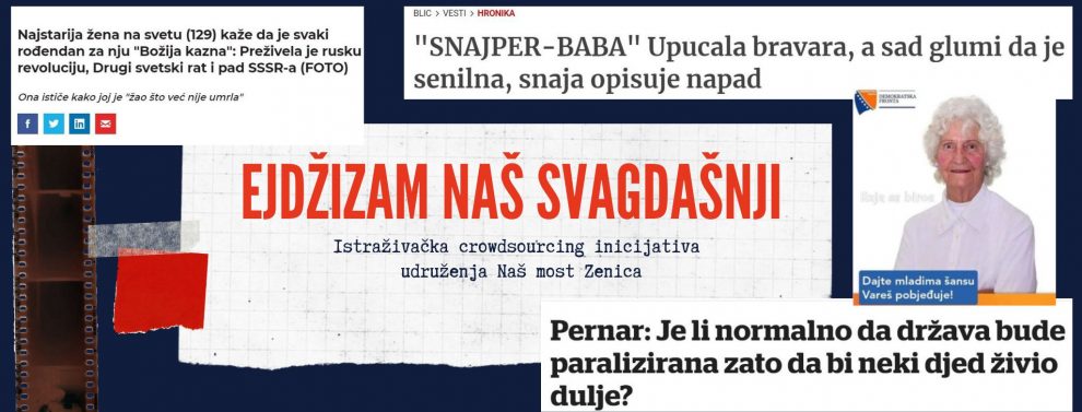 Naš most Zenica pokreće inicijativu za dokumentovanje ejdžizma u medijima – Udruženje Naš most Zenica pokreće crowdsourcing inicijativu za prikupljanje, analizu i razgolićavanje medijskih sadržaja koji na površan, banalizovan i stereotipan način izvještavaju o starijim osobama u BiH i zemljama regiona.