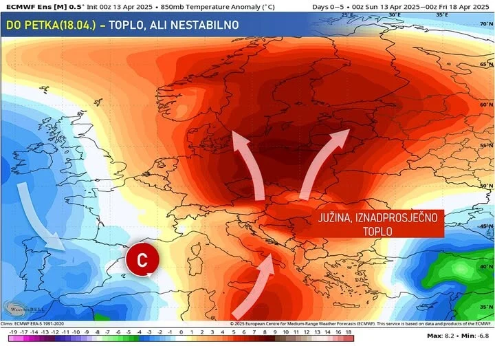Visinska strujanja su okrenula na jugozapadna i od danas kreće još jedan period izražene južine uz iznadprosječno toplo vrijeme, povremeno pojačan jugo i nestabilno vrijeme. Sve to uz čestice saharskog pijeska i prašine u zraku pa će biti “prljave kiše”, navodi Bh. meteo.