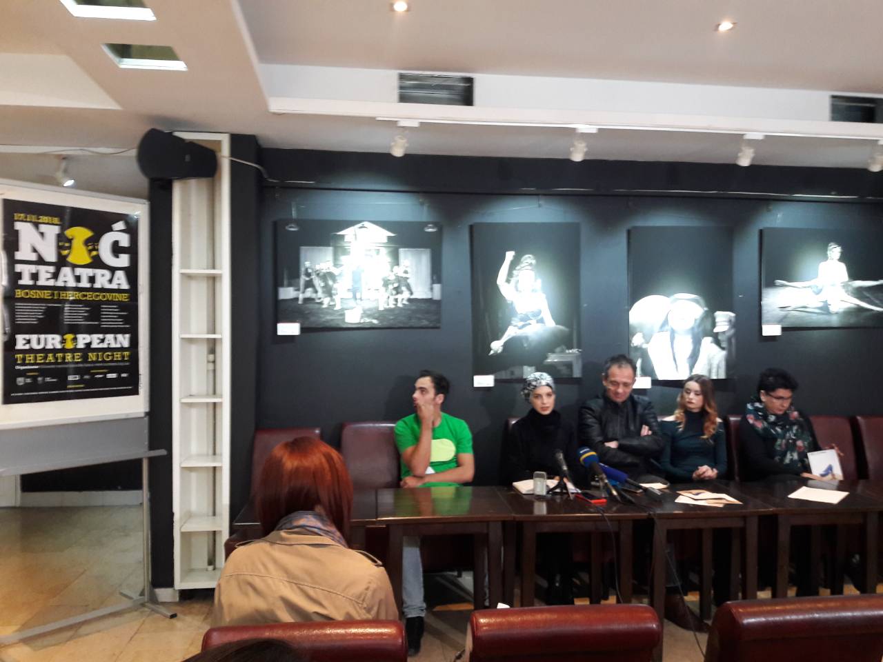Na konferenciji za medije su govorili: direktor SARTR-a Aleš Kurt, koordinatorica Evropske manifestacije Noć teatra za BiH Merima Handanović, mentorica predstave „Igre u pijesku“ Jasna Žalica i glumci iz predstave Fatima Kazazić i Jasenko Pašić.