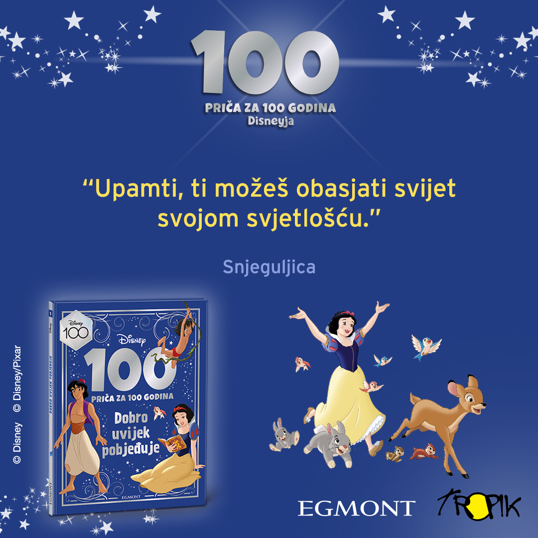 Prisjećajući se svojih najdražih priča, možda ćete se sjetiti trenutka kad ste, kao malo dijete, s roditeljima gledali svoj omiljeni Disneyjev film. Možda ćete se sjetiti one jedne Disneyjeve slikovnice koju ste toliko puta pročitali da ju gotovo znate napamet. Ista sjećanja već 100 godina dijele milijuni ljudi diljem svijeta kojima je Disney unio radost i čaroliju u život.
