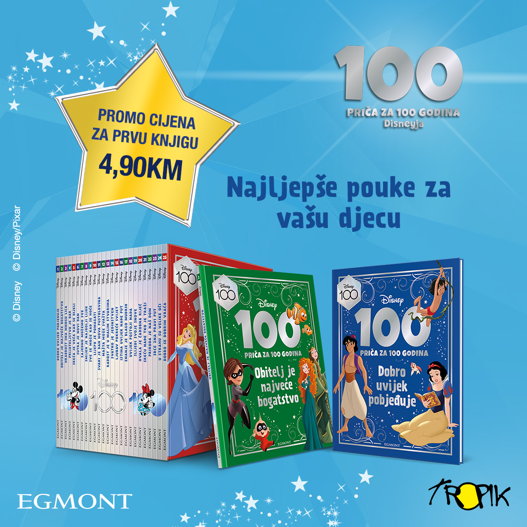Ovaj put vam donosimo kolekciju od 25 knjiga. Svaka knjiga sadrži po 4 priče, sa prekrasnim poukama i pozitivnim vrijednostima za djecu i cijelu porodicu. Proslavimo zajedno 100. godišnjicu Disneyja uz priče o dobroti, porodici i snovima!