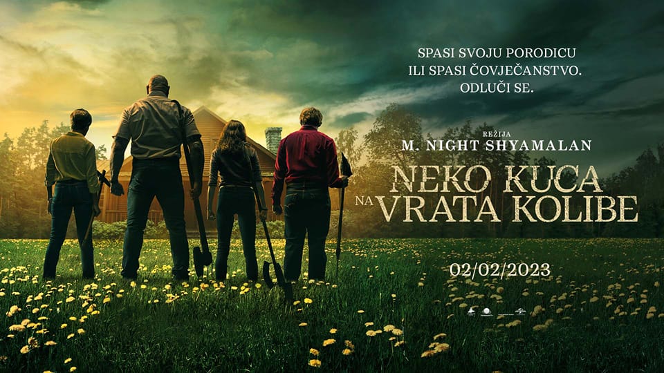 Na veliko oduševljenje fanova žanra, kao i poštovalaca reditelja M. Nighta Shyamalana film „NEKO KUCA NA VRATA KOLIBE” (KNOCK AT THE CABIN) od danas (02. februara) možete pogledati u našim kinima.