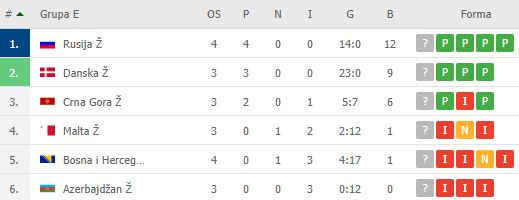 Nakon tri poraza i remija Zmajice zauzimaju peto mjesto u grupi, a naredni meč igraju 25. novembra kada će im protivnik biti Danska, selekcija koja ih je u nedavno meču deklasirala sa 8:0.