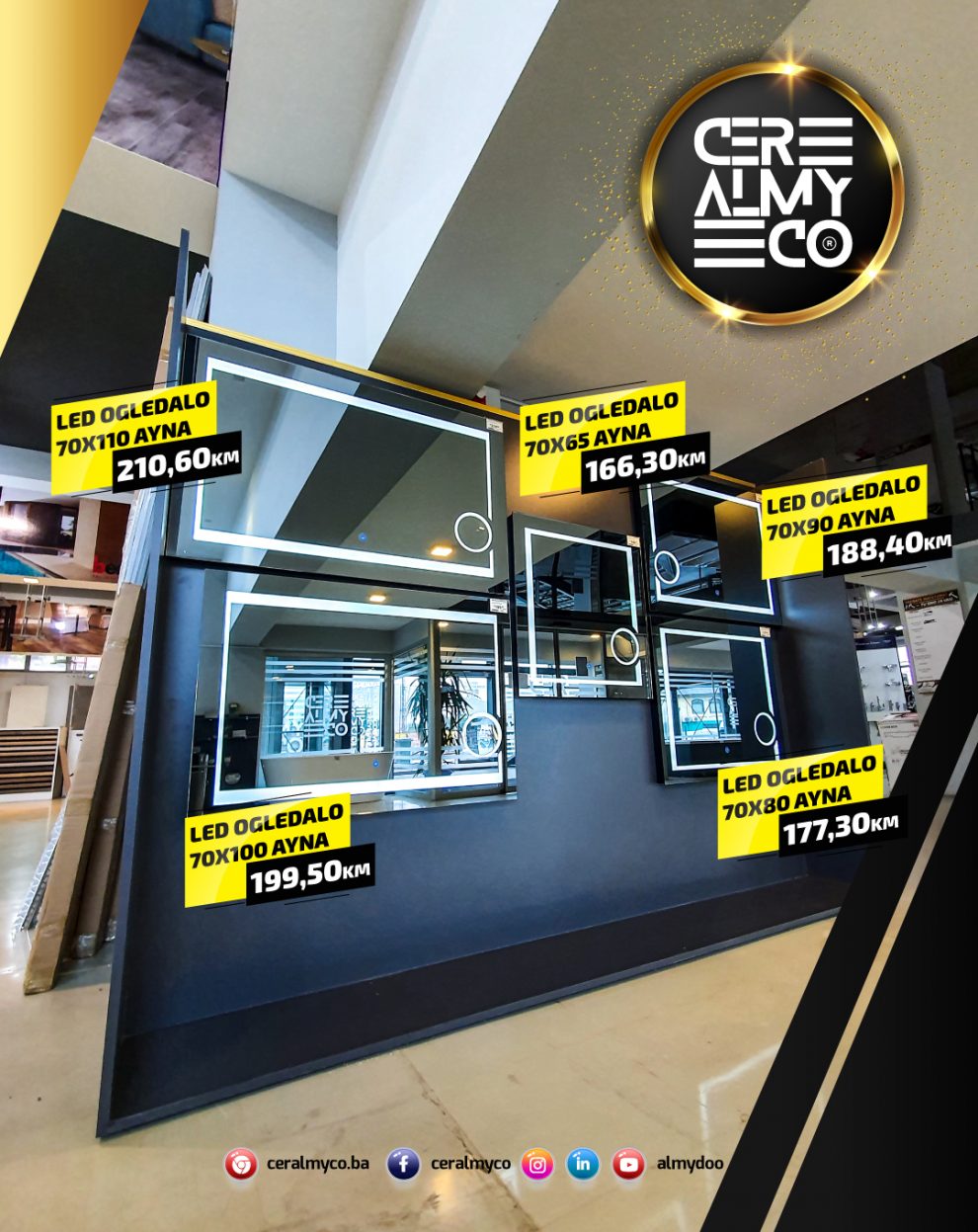 Novo u ponudi u salonu Ceralmyco – Novo u ponudi u salonu Ceralmyco. Led ogledala po super promotivnim cijenama. Dimenzije ogledala: 70×65, 70×80, 70×90, 70×100 i 70×110. Posjetite nas na adresi Vrandučka bb u upravnoj zgradi kompanije Almy! Da li je i Vaš izbor Ceralmyco?