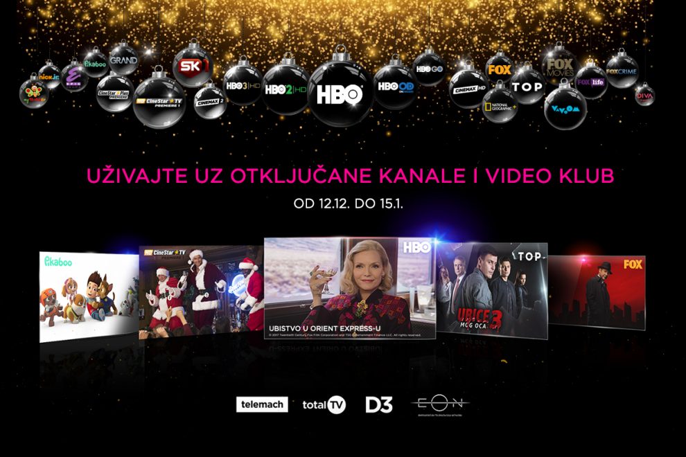 Novogodišnji poklon: Telemach otključava sve kanale – Kompanija Telemach najavila je da će otključati sve kanale koje ima u ponudi tokom božićnih i novogodišnjih praznika, od 12. 12. do 15. 01.