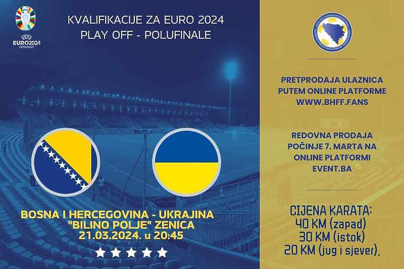 Kao i kada je u pitanju bila rezervacija ulaznica za grupnu fazu UEFA EURO 2024 ukoliko se naša reprezentacija po prvi put plasira na ovo takmičenje, svi zainteresovani se mogu prijaviti na platformu i u opciji kupovine ulaznice za utakmicu Bosna i Hercegovina – Ukrajina unijeti svoju rezervaciju. Jedna osoba uz važeće podatke može aplicirati za rezervaciju do četiri ulaznice. Sve validne rezervacije biće uzete u obzir, a navijači će biti kontaktirani putem e-maila 5. marta.