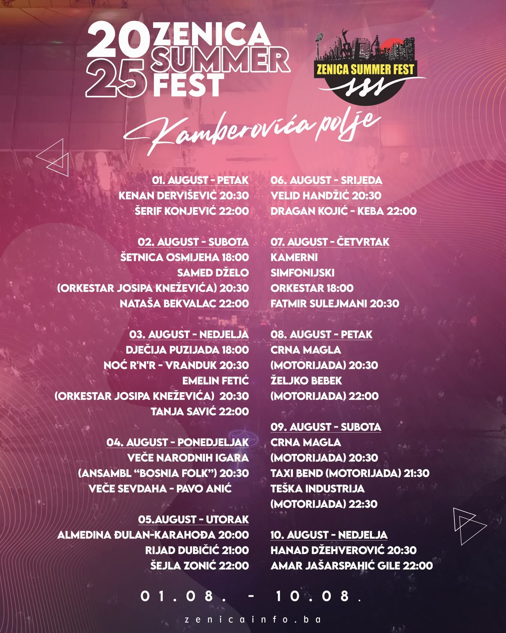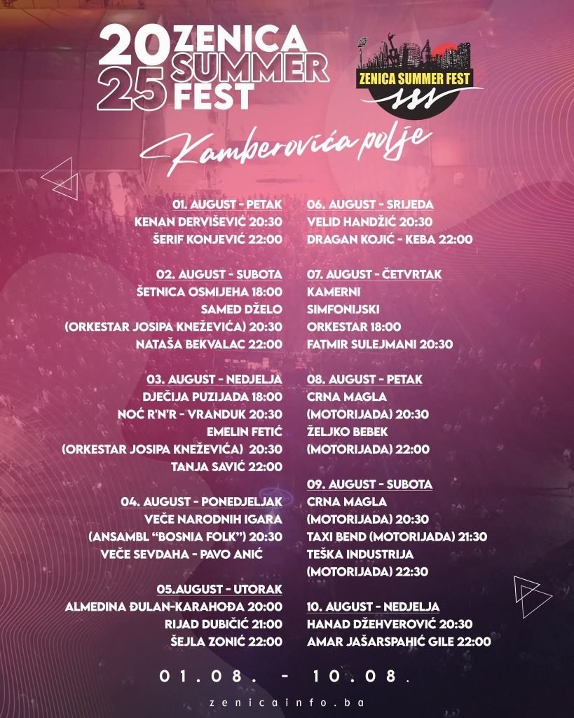 Zenica Summer Fest 2025 – Program po danima