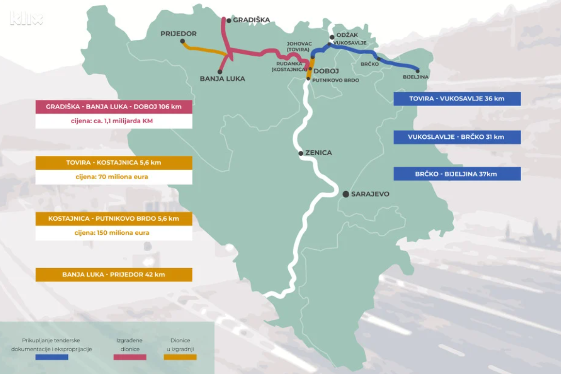 Pored toga, Republika Srpska ima još jedno otvoreno gradilište autoputa i to na pravcu od Banje Luke do Prijedora, koji na osnovu koncesionog ugovora gradi kineski partner.