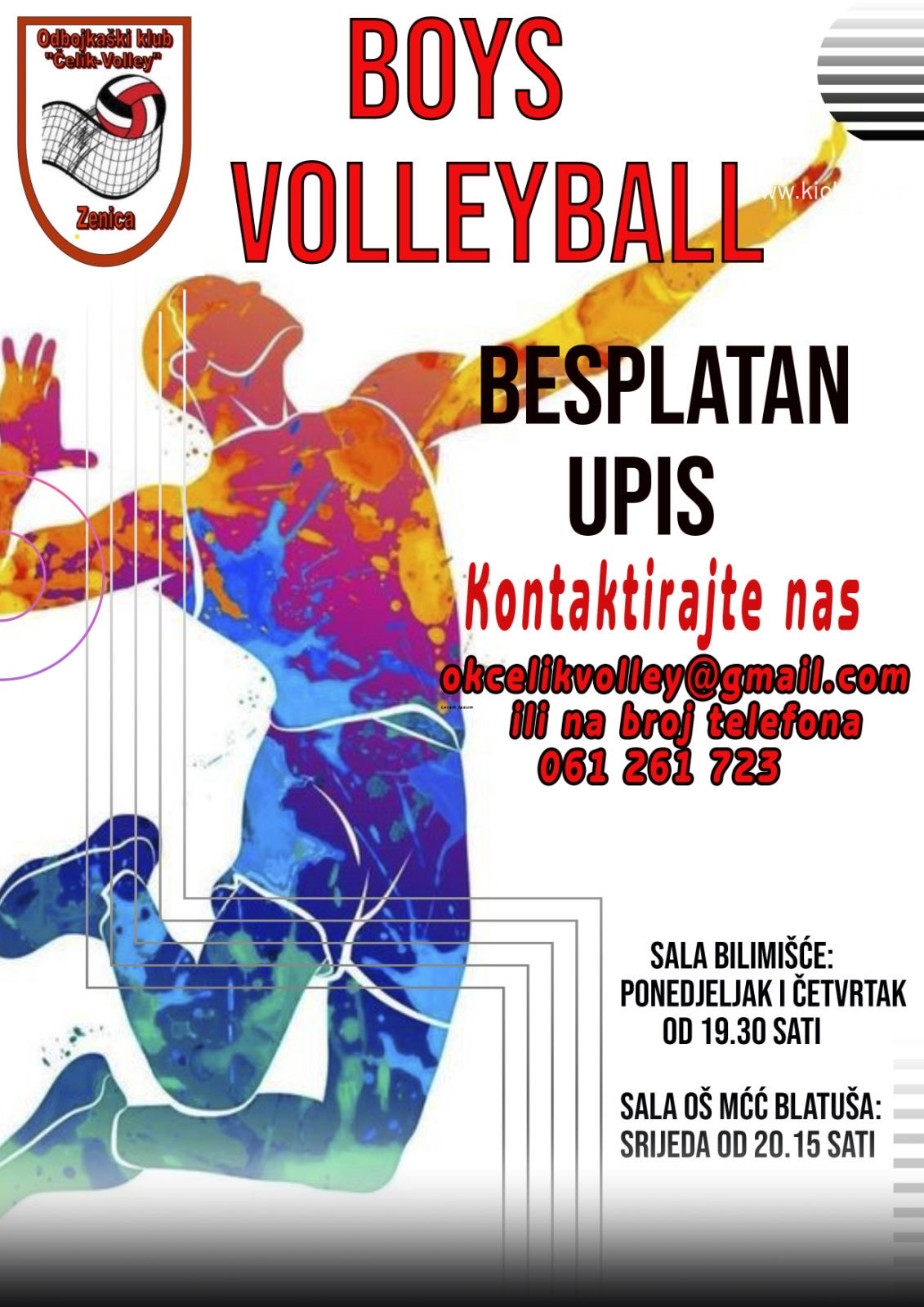 Trenutno u našem klubu rade četiri trenera prenoseći svojim mladim odbojkašima bogato odbojkaško znanje. Mora se istaći da je “muška odbojka” na margini veće duži niz godina pa je na ovoj grupi sportskih radnika veliki zadatak da privuku dječake i svojim vještinama uspiju da ostanu u trenažnom postupku. Mora se i pohvaliti odziv velikog broja dječaka koji su u proteklom periodu usvoji određene odbojkaške vještine i već konkurišu za seniorsku ekipu Ovom prilikom pozivamo sve zainteresirane dječake Grada Zenice da se pridruže ovom sportskom kolektivu. Za sve nove članove UPRAVA KLUBA JE PRIPREMILA I PRIGODNE POKLONE. Treninzi su u sportskoj dvorani Bilmišće ponedjeljak i četvrtak od 19,30 sati i dvorana OŠ M.Ć.Ć. Blatuša srijeda od 20:15 sati.