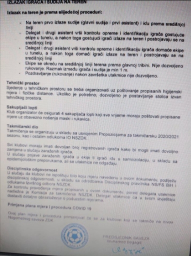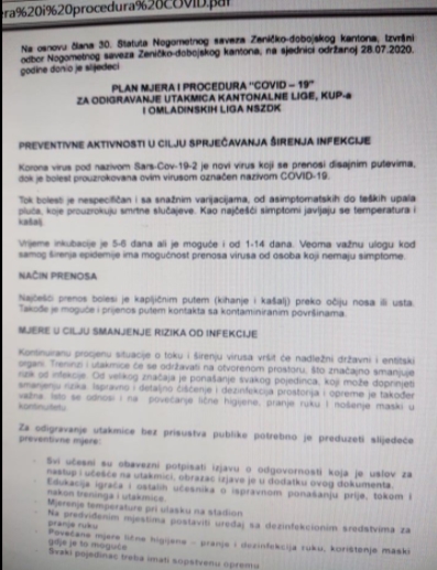 Ovaj protokol očito nisu dobro pročitali u ESZEK, koji su jučer dostavili plan mjera i procedura “Covid-19” za odigravanje utakmica Kantonalne lige, Kup-a i Omladinskih liga ZDK.