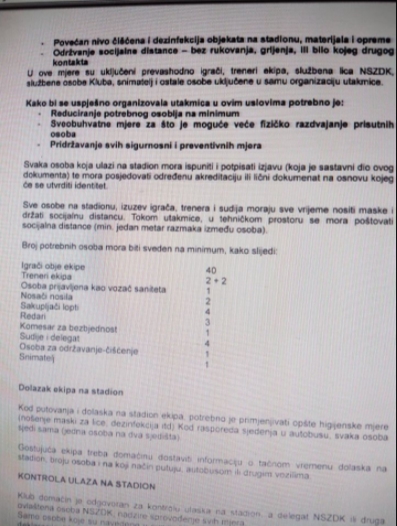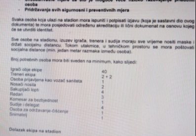 U protokolu piše da se broj potrebnih osoba na utakmici svede na minimum, što je razumljivo međutim u NSZDK su napravili veliku grešku i time poslali veoma ružnu poruku svim medijima. Naime u protokolu piše da na stadionu za vrijeme utakmica može biti samo jedan ovlašteni snimatelj, dok se ne spominju ni novinari ni fotografi.