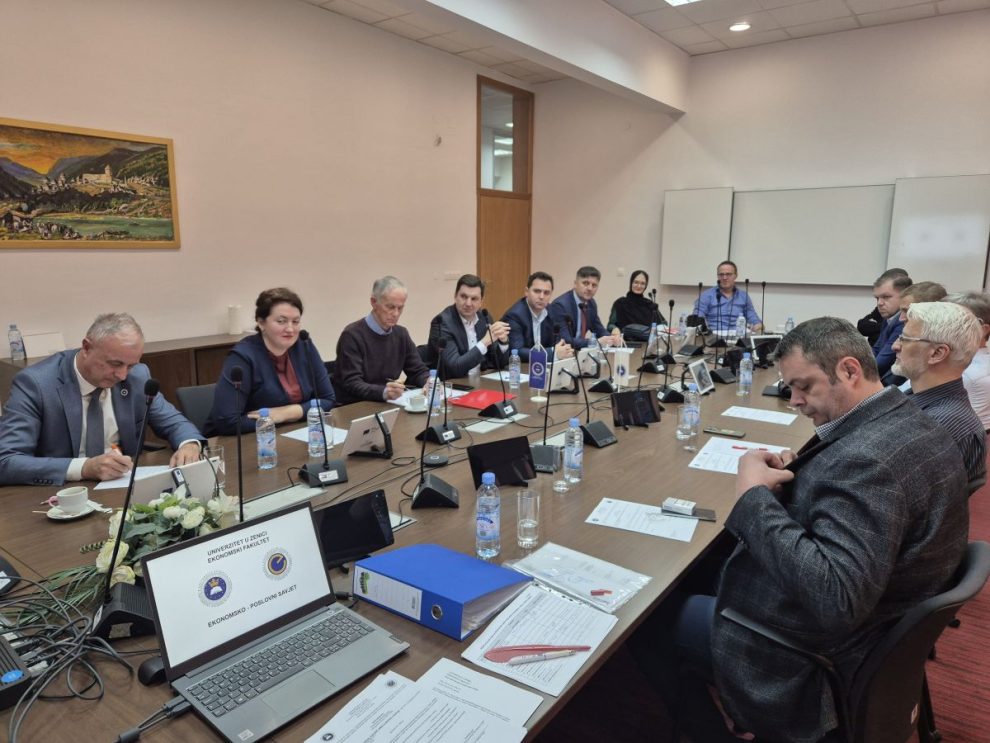 Članovi Ekonomsko-poslovnog savjeta, koji čini 25 respektabilnih kompanija iz Bosne i Hercegovine, zajedno sa predstavnicima Univerziteta u Zenici na današnjoj sjednici su raspravljali o nekoliko ključnih tema koje će imati dugoročni utjecaj na razvoj Univerziteta u Zenici sa posebnim naglaskom na jačanje saradnje Univerziteta sa privredom i društvenom zajednicom. Rektor Univerziteta u Zenici, prof. dr. Jusuf Duraković je izrazio dobrodošlicu i zadovoljstvo nastavkom uspješne saradnje Univerziteta i privrede, te je govorio o praktičnim iskustvima spoja privrede i nauke. Dekanesa Ekonomskog fakulteta, prof. dr. Ajla Muratović-Dedić predstavila je konkretne opcije i korake za nastavak i unapređenje uspješne saradnje sa Ekonomskim fakultetom u Zenici.
